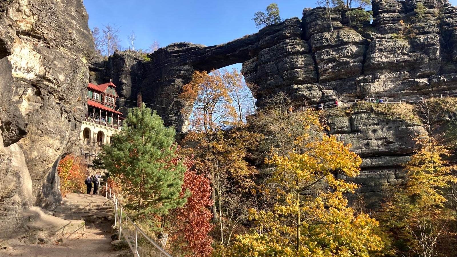 Begin your day in Germany, where the famous Bastei Bridge links massive sandstone towers high above the Elbe River. This 19th-century structure offers panoramic views over deep gorges and rugged hills. A short, easy walk brings you to the bridge — one of the most iconic and photogenic locations in the region.