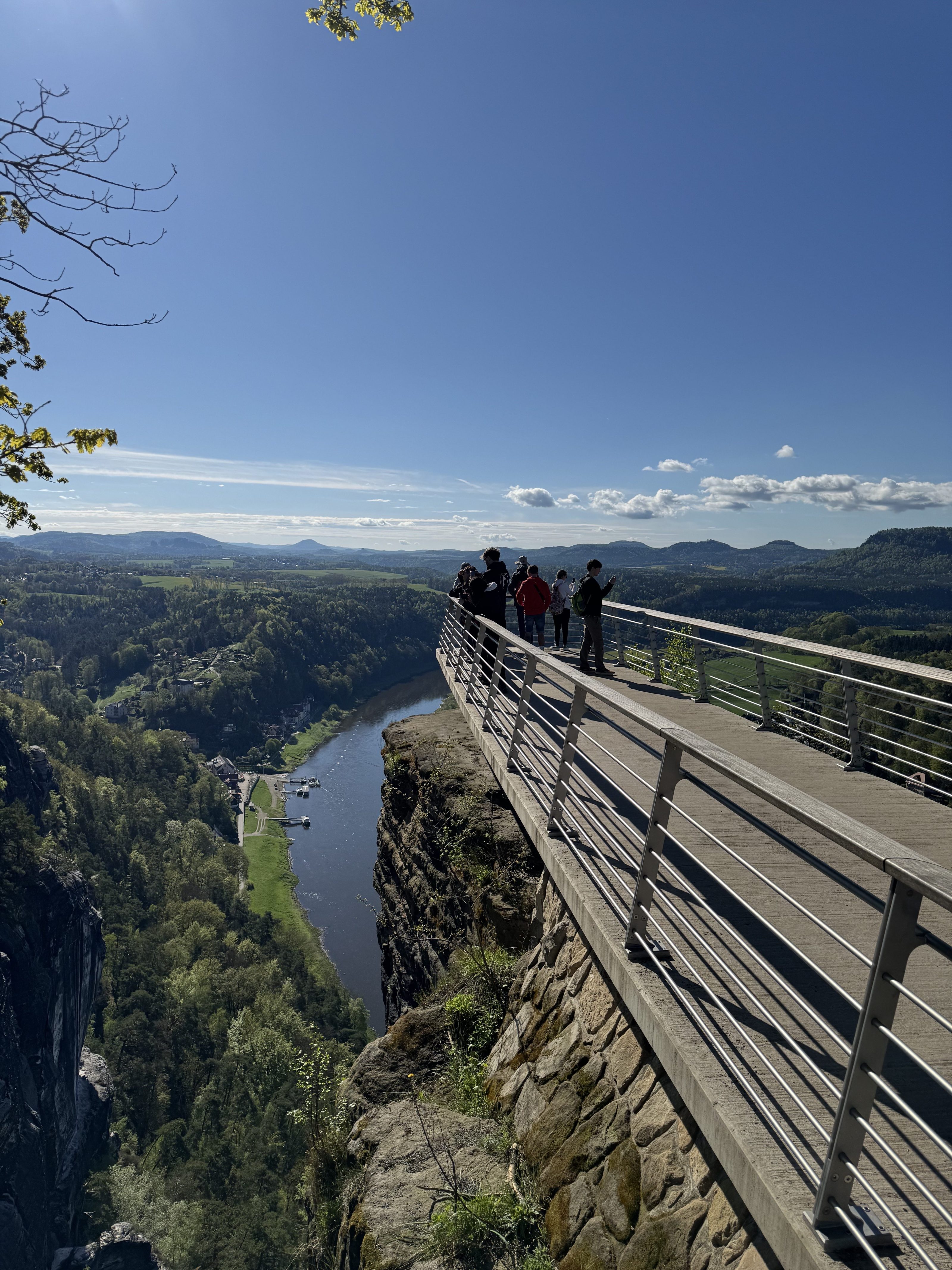 The Bastei Bridge is one of Germany’s most famous natural landmarks, set high above the Elbe River in the Saxon Switzerland National Park. Built in the 19th century from local sandstone, the bridge links a group of towering rock formations that have been shaped over millions of years. From the viewpoint, you’ll enjoy breathtaking panoramas of deep canyons, lush valleys, and the surrounding Elbe Sandstone Mountains. It’s a place where geology and romance meet, perfect for both hikers and photographers.