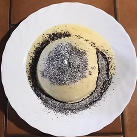 Giant Sweet Dumpling Stuffed with Plum Jam and Vanilla Sauce